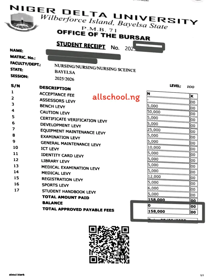 The Niger Delta University (NDU) School Fees Schedule for 2025/2026 academic session has been announced